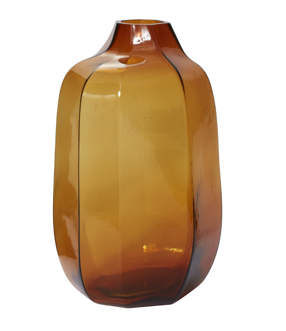 Like a rare rock formation, this mouth-blown amber glass vase makes a statement among other decor or styled with florals or branches. Its unique, organic shape & warm amber hue are as stunning to look at as the fresh bouquet it can hold.