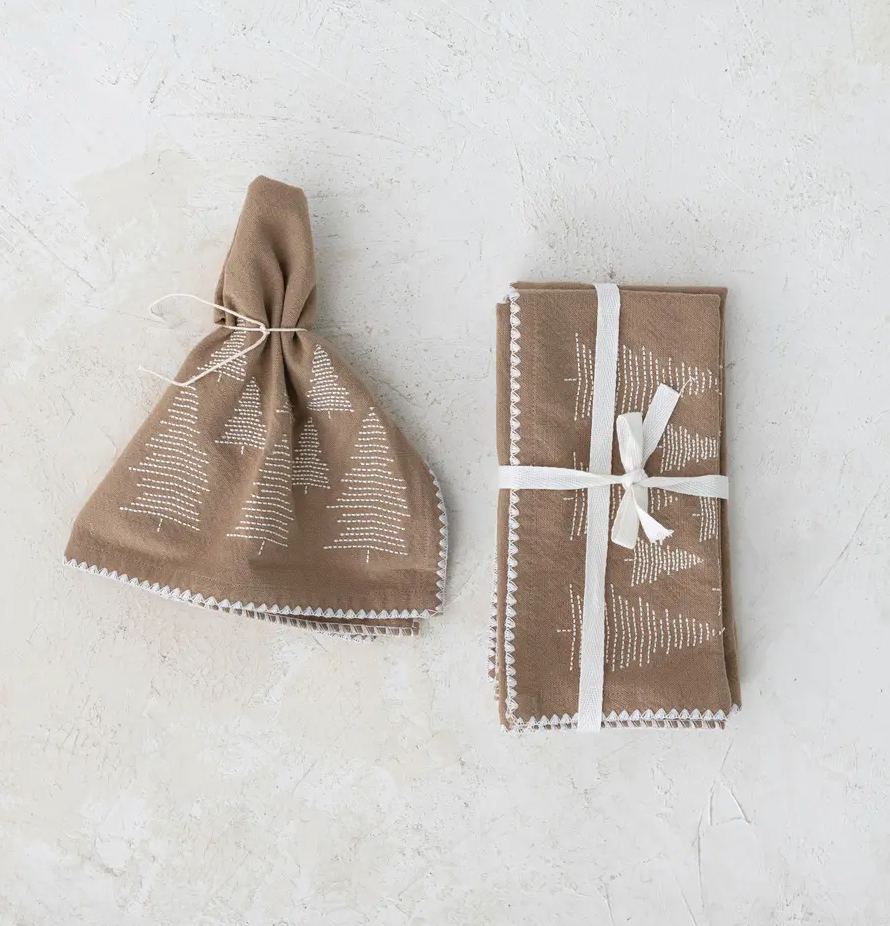 Set of 4 cotton napkins with embroidered trees & trim!