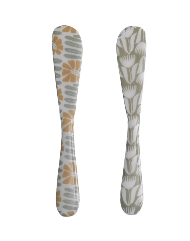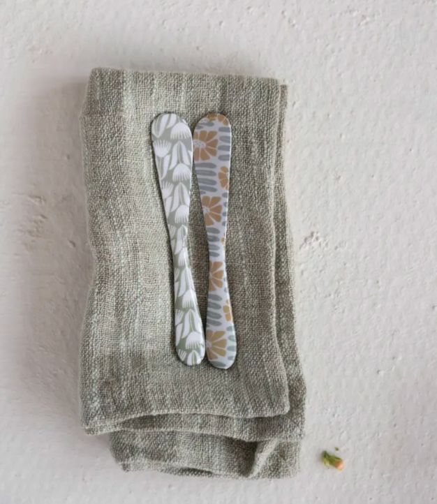 6"L Enameled Stainless Steel Canape Knife w/ Flowers