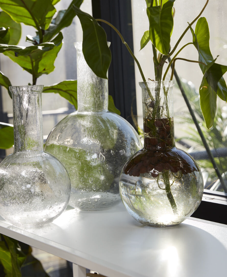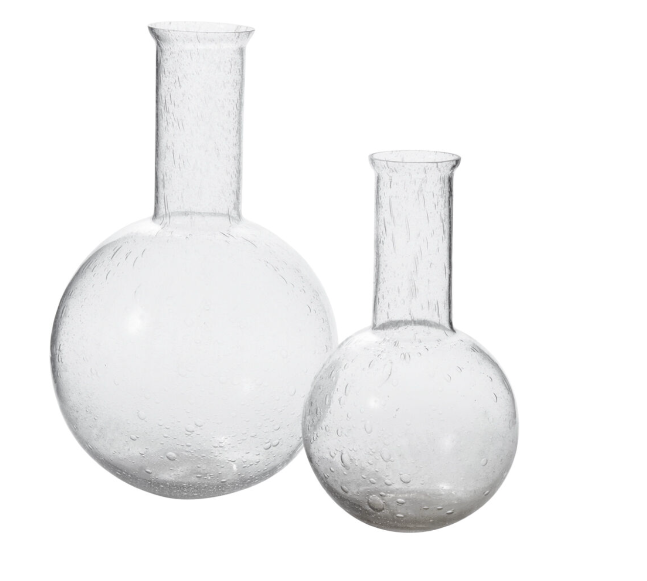 With its chic, organic shape, the versatile, oversized Florence Vase makes a sophisticated statement as a home accent piece. This large-scale, thick recycled bubble glass vase is designed to hold an arrangement of branches or long-stemmed propagation clippings. Each vase is one-of-a-kind, perfect for modern plant shops or home & gift stores.