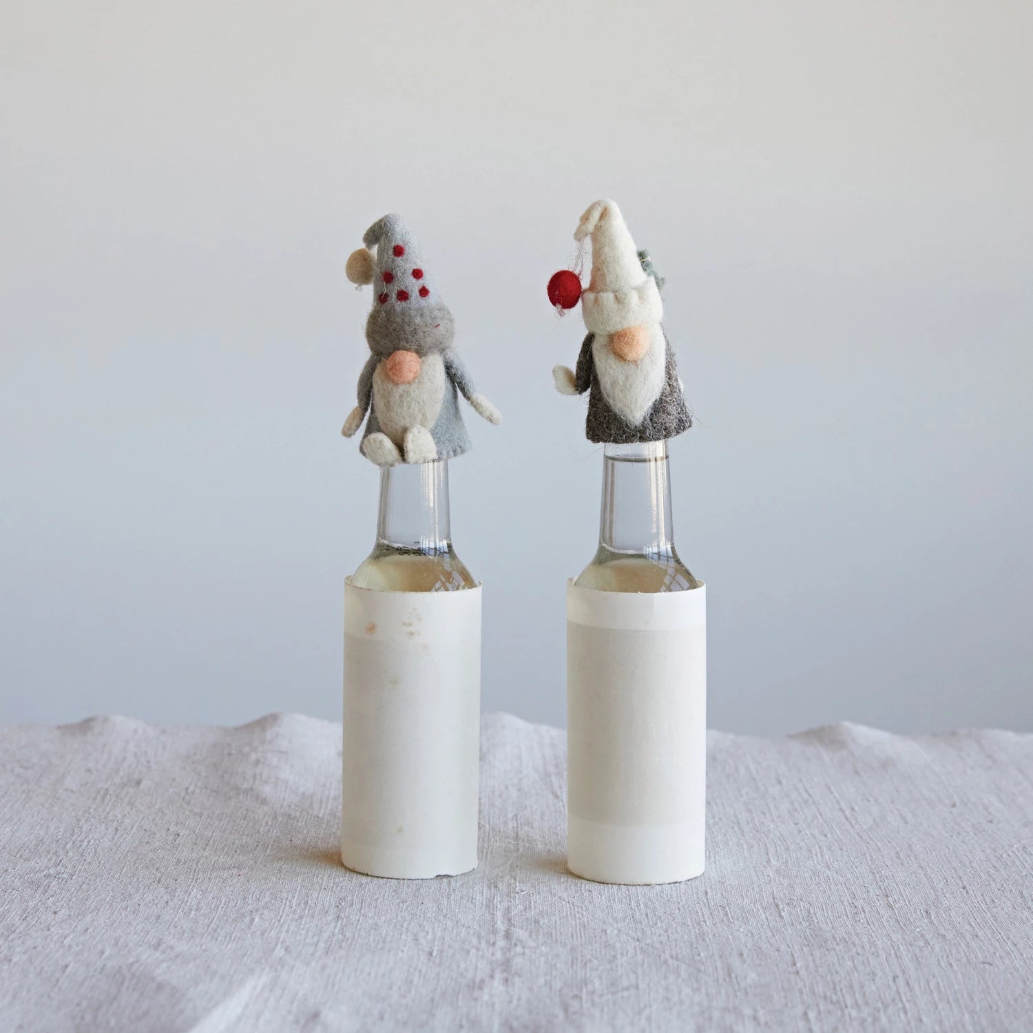 4"H Handmade Wool Felt Gnome Bottle Topper, Multi Color,