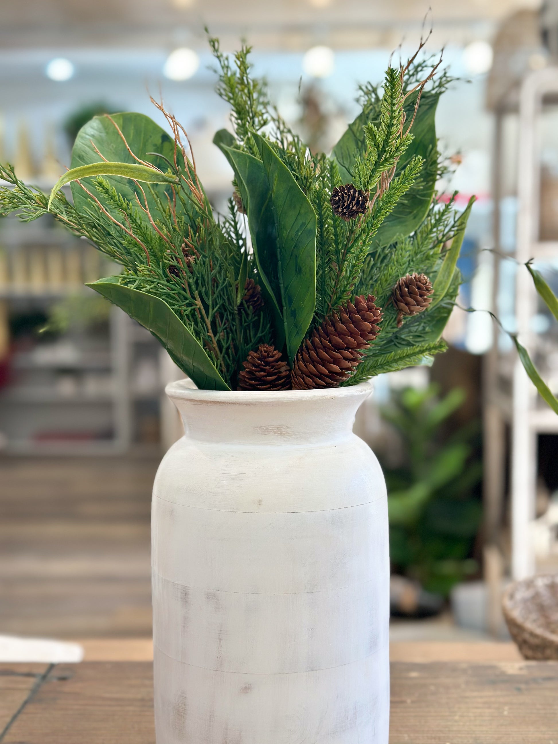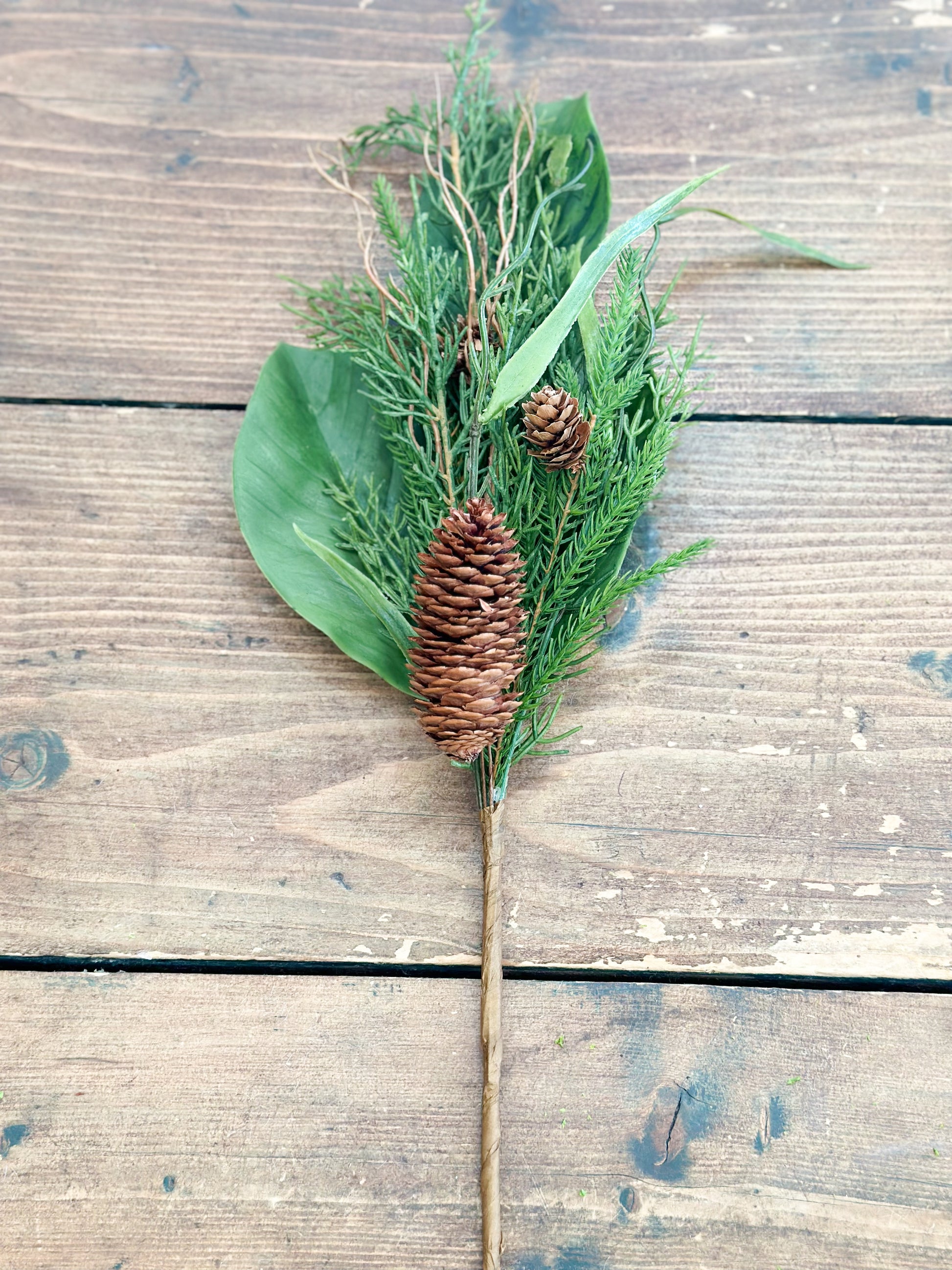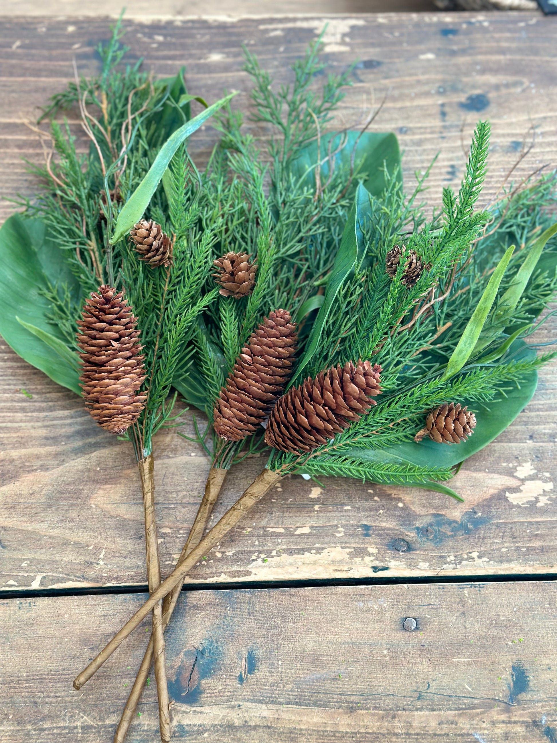 18" Artificial Magnolia Leaf, Pinecone & Pine Stem Pick -Green/Brown