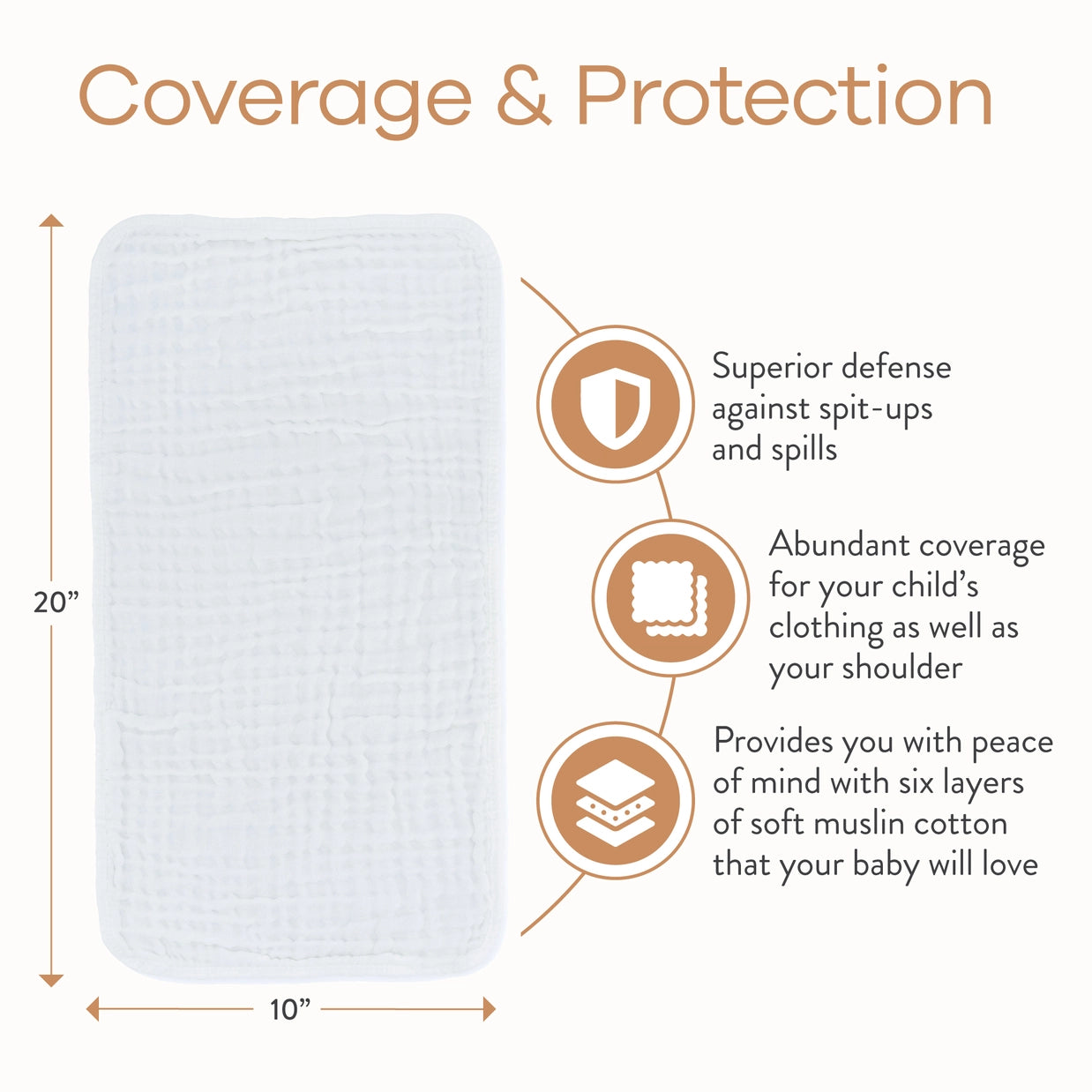 ⚫ EXCELLENT QUALITY PURE COTTON -Made from 100% breathable cotton, these muslin burp cloths are top quality and machine washable.