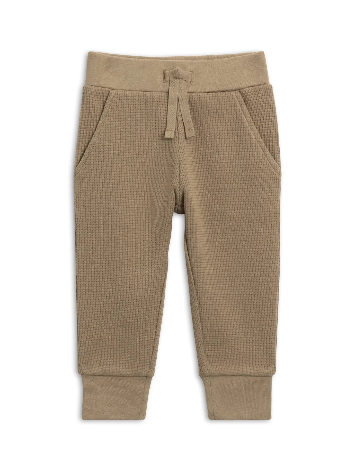Whether you're spending the day lounging at home or braving the chilly winter weather outside, the Nelson Waffle Knit Joggers are the perfect cozy pull-on pants for any occasion. Made from organic waffle knit fabric with an elastic waistband and spacious pockets for tiny treasures. Made of 100% Organic Cotton Waffle Knit fabric Water-based dyes ensuring long-lasting color vibrancy and durability Sustainably sourced and ethically produced Machine Wash Cold, Tumble Dry Low