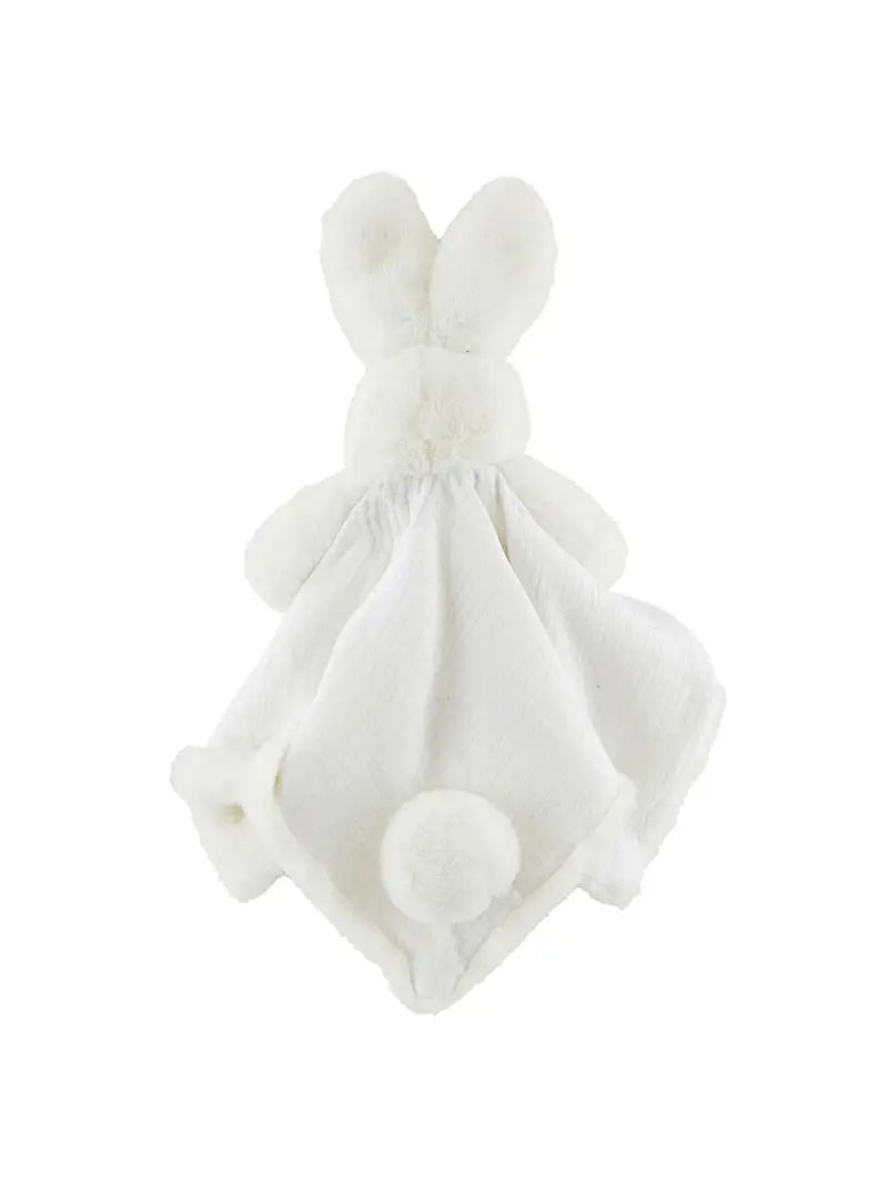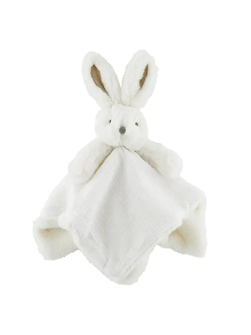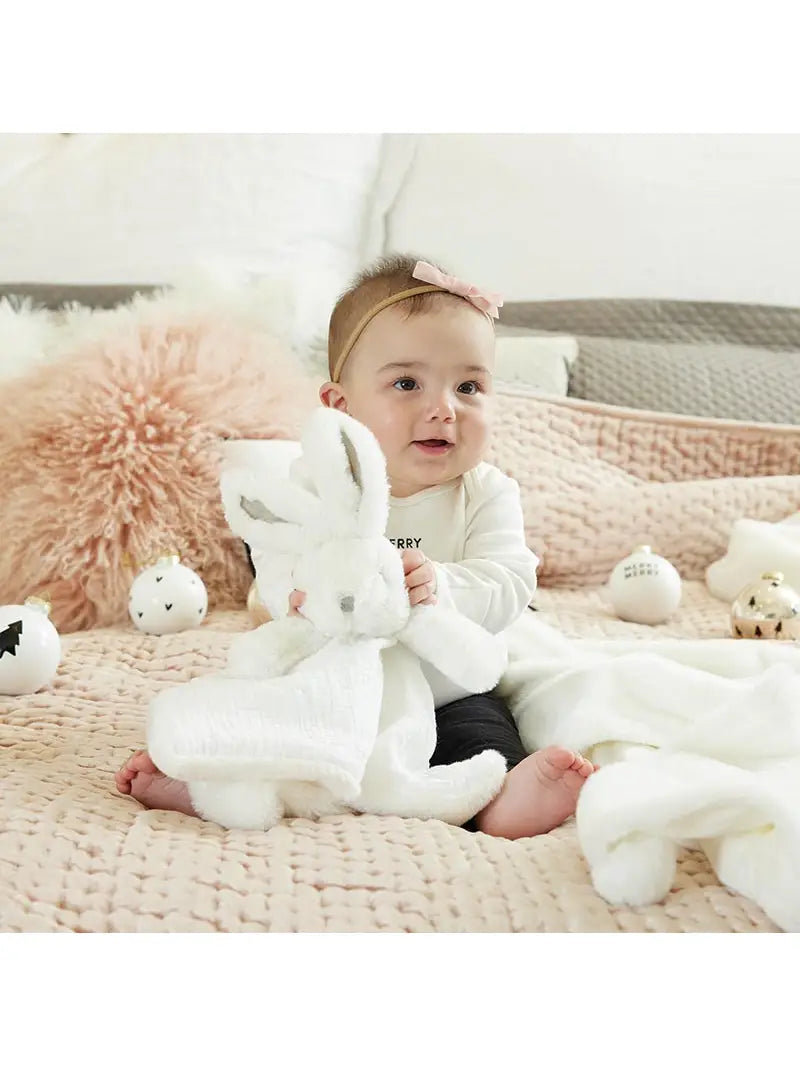 Cuddles are the sweetest. This super soft plush cuddle bunnie is perfect for all those snuggly moments. • Material: Cotton, Muslin, Polyester • Size: 14" SQ • Care Instructions: Spot Clean Only