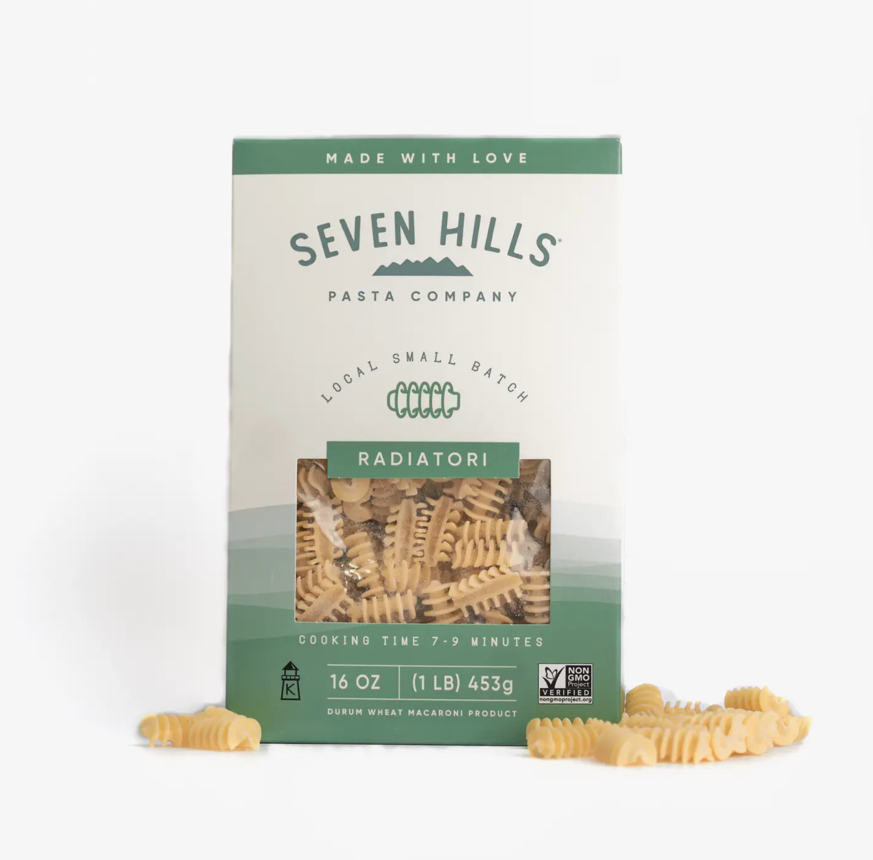 This very unique pasta recalls a vintage car's radiator, perfect for trapping in sauces of all kinds and textures. Box dim: 5"x3"x9". Semolina Flour, Water. 1lb (16oz)