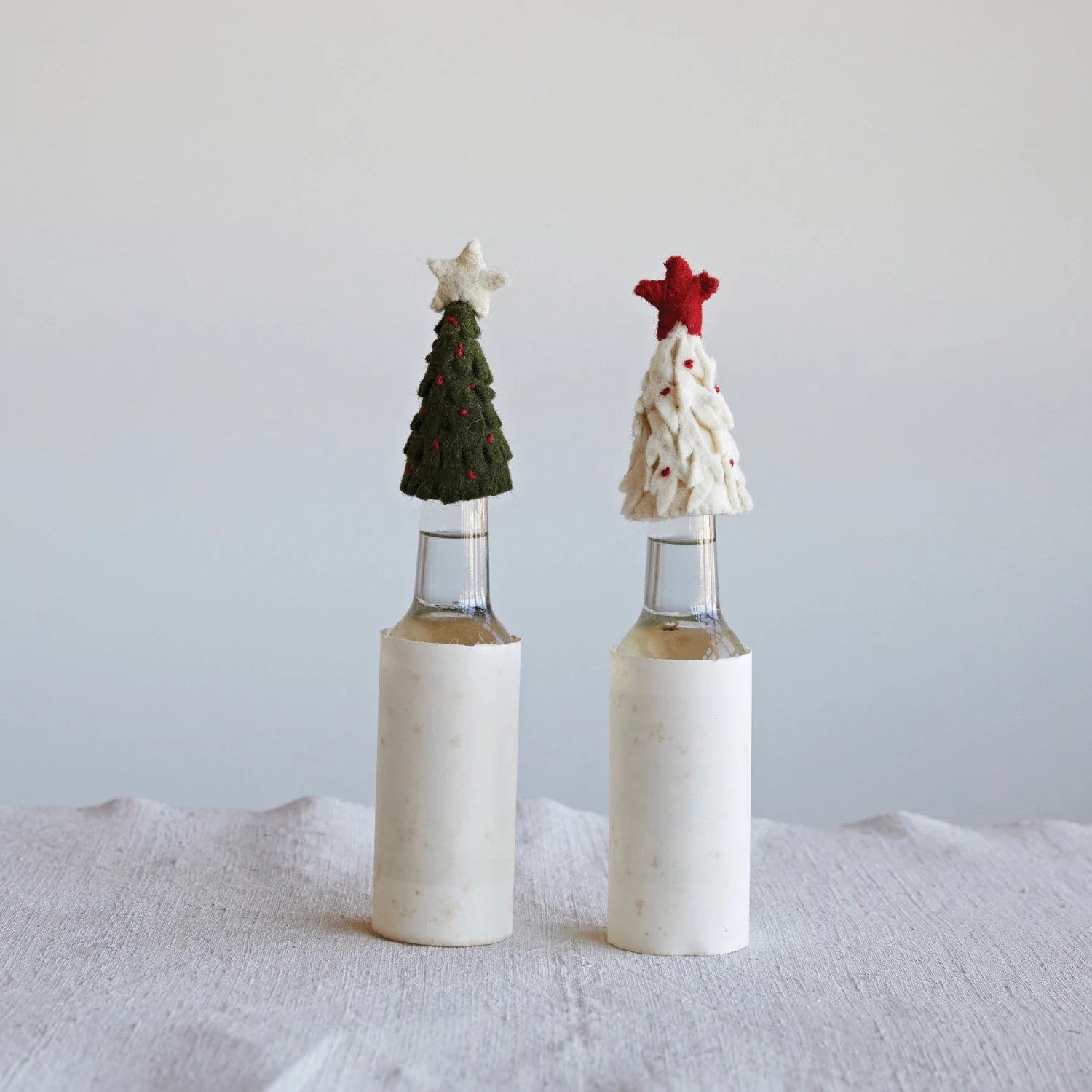 4"H Handmade Wool Felt Tree w/ Star Bottle Topper