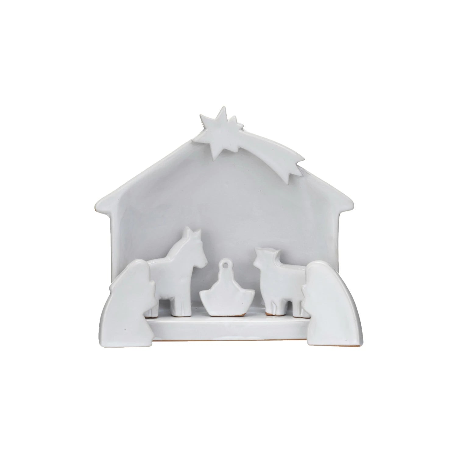 This stoneware nativity set is a beautiful and convenient way to decorate the home. It features a set of seven stoneware nativity figures with a reactive glaze and a white color, giving them a subtle and refined look. The nativity figures have a simple and elegant shape that is pleasant to touch and look at. The nativity set is a simple and elegant piece that can celebrate the birth of Jesus in any decor style, from traditional to modern. It is ideal for adding some spirituality and grace to the home, where it can make any space feel more sacred and serene. The stoneware nativity set is made of stoneware that is durable, smooth, and easy to clean. It measures 6 inches in length, 2 inches in width, and 5.5 inches in height, making it a noticeable and attractive accessory. This is a perfect choice for anyone who loves simple and elegant home decor. A set of seven stoneware nativity figures with a reactive glaze and a white color. A simple and elegant piece that can celebrate the birth of Jesus in any decor style, from traditional to modern. Ideal for adding some spirituality and grace to the home, this stoneware nativity set can be displayed on a table, a shelf, or a mantel.